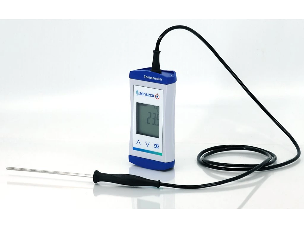 Senseca ECO 121-I3 je přesný vodotěsný univerzální teploměr s pevně připojeným ponorným snímačem Ø 3 mm